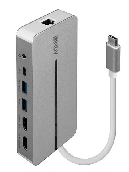 LINDY No. 43360 - DST-Mx Duo, Mini Docking Station per Laptop/MacBook USB-C con Supporto 4K su Doppio Display & Ricarica Pass-Through 100W