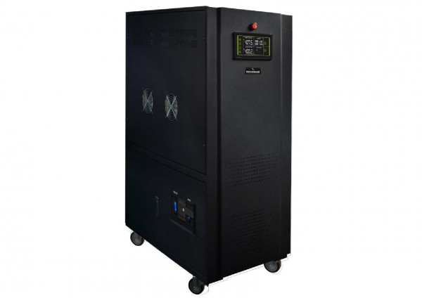 Stabilizzatore, versione trifase ad SCR con controllo elettronico a microprocessore, potenza di 100KVA, con elevata precisione di stabilizzazione (±1% in uscita) a forma d'onda sinusoidale, insensibilità al carico e al fattore di potenza, dispone di bypass manuale. Non introduce distorsioni armoniche, peso 356 kg dimensioni 59x145x96 cm. Link al datasheet completo: https://www.tecnoware.com/Downloads/File PDF aggiornati/Sch.Tec_Trifase.pdf