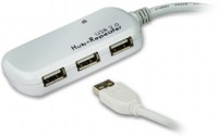 The UE2120H allows users to extend the distance between a computer and USB device(s) up to 12 meters via the active extender hub. USB signals transmitted through these cables maintain optimal signal integrity and meet USB 2.0 standards. Up to 4 extender cables (UE2120) and 1 Extender Hub (UE2120H) can be chained together, so that cable distance is increased by up to 60 meters. 1x 4-Port USB 2.0 Extender Hub