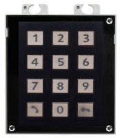 The numeric keypad module helps you dial users via their phonebook positions or phone numbers, control the lock and use other code-accessible functions. The keypad digits and symbols are backlit. Available also in nickel.