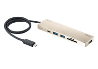 All in a Sleek, Compact 6-Port Dock The ATEN UH3239 USB-C Multi-port Mini Dock provides all your essential ports in a sleek and compact device for on-the-go expansion. It’s small yet packed with powerful connectivity, all from a single USB-C port. Lightweight, Compact Design with Ultra-Long USB-C Cable Designed for maximum portability, the mini dock can easily fit into your bag or pocket, making it ideal to take with you on-the-go anywhere. The extended, built-in USB-C cable is 55cm long, suitable for any setup and situation with maximum convenience. Hi-Res 4K@30Hz HDMI Display Extend your viewing workspace with a single monitor for crystal-clear resolution, up to 4K@30Hz, for on-the-go presentations, conference calls, and video streaming. High-Speed 5Gbps Data Transfer High-speed 2 USB-A ports and USB-C 3.2 port are capable of 5Gbps transfer speeds for quickly synchronizing a complete music library or a photo album. Type-C 60W PD and Data Transfer The USB-C port supports up to 60W power delivery providing pass-through charging for your Windows laptop, MacBook, or iPad Pro, while also supporting standard 5Gbps data transfer.