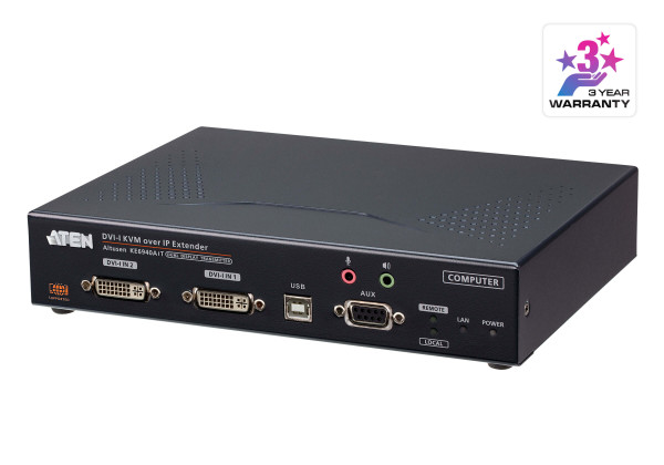 Il KE6940AiT DVI-I a display doppio supporta due schermi DVI a ogni estremità e offre trasmissioni video senza perdita e a bassa latenzafino a 1920 x 1200 a 60 Hz.