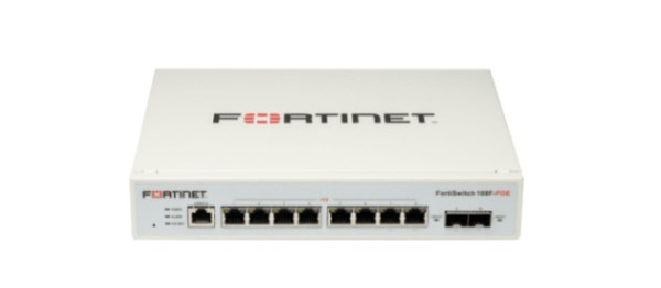 Fortinet-FS-108F-FortiSwitch-108F L2 Switch - 8 x GE RJ45 ports, 2 x GE SFP, Fanless, 12V/3A power adapter of input voltage 100 - 240VAC. Switch can also be powered over ethernet on Port 8 (PD port), FortiGate Switch controller compatible.