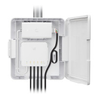 USW-Flex-Utility L'USW Flex Utility è un involucro per esterni resistente alle intemperie progettato per l'uso con lo Switch UniFi Flex, USW-Flex. Include un cavo patch Ethernet e un adattatore PoE da 60W, che fornisce un budget PoE massimo di 46W. L'USW Flex Utility può essere facilmente montato su un palo, offre una gestione pulita dei cavi e un blocco a vite per la sicurezza. Uno switch Layer 2 compatto a 5 porte che può essere alimentato con PoE o con un adattatore USB-C da 5 V: (4) Porte GbE (1) Porta di ingresso PoE GbE per l'alimentazione Alimentazione opzionale con l'adattatore USB-C da 5V, 1A incluso