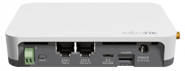 MikroTik, KNOT LR8G. Gateway IoT industriale con LTE CAT-M/NB2, LoRa 868 MHz, Wi-Fi, Bluetooth, GPS e PoE, gestito da RouterOS v7.