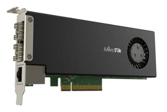 MikroTik, CCR2004-1G-2XS-PCIe – Scheda router PCIe con 2 porte 25G SFP28, 1 porta Gigabit, CPU quad-core ARM, 4 GB RAM e RouterOS v7.