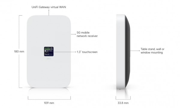 Ubiquiti - U5G-Max - Modem 5G 3.4Gbps downlink, 2.5GbE RJ45, dual SIM/eSIM, PoE, touchscreen
