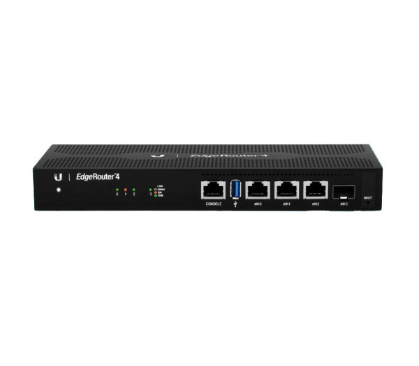Ubiquiti Networks EdgeRouter 4. Tipo di interfaccia Ethernet: Gigabit Ethernet, Tecnologia di cablaggio: 10/100/1000Base-T(X), Velocità trasferimento Ethernet LAN: 10,100,1000 Mbit/s. Versione USB: 3.2 Gen 1 (3.1 Gen 1). Protocolli di gestione: UNMS, CLI, SNMP, NetFlow, LLDP, NTP. Algoritmi di sicurezza supportati: IPSEC, SNMP, SSH, Supporto VPN: IPSec Site-to-Site and Remote Access OpenVPN Site-to-Site and Remote Access PPTP Remote Access.... Frequenza del processore: 1000 MHz, Supporto di memoria: eMMC, Capacità memoria interna: 4 GB