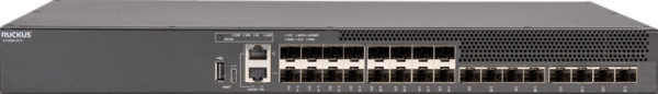 Ruckus Networks ICX 8200 Switch, 16×1/10GbE SFP+ ports, 8×25 GbE SFP28 stacking/uplink-ports, three-year remote TAC support. Power cord not included. TAA