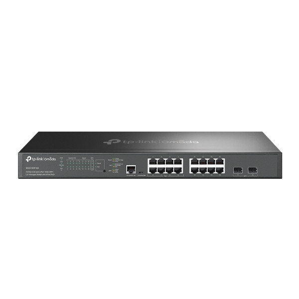 TP-Link - SG3218XP-M2 - Omada 16-Port 2.5GBASE-T and 2-Port 10GE SFP+ L2+ Managed Switch with 8x 2.5G PoE+ Ports, 8x 2.5G Non-PoE Ports, 2x 10G SFP+ Slots, RJ45/Micro-USB Console Port, 802.3at/af, 240 W PoE Power, 1U 19-inch Rack-mountable Steel Case, Integration with Omada SDN Controller,Static Routing, OAM, DDM, 802.1Q VLAN, QinQ, STP/RSTP/MSTP, IGMP Snooping, 802.1p/DSCP QoS, ACL, 802.1x, Radius/Tacacs+ Authentication, LACP, CLI, SNMP, Dual Image/Configuration, IPv6