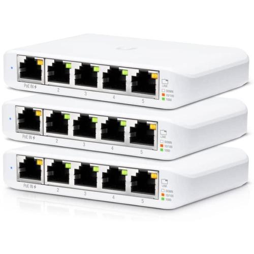 Ubiquiti - USW-Flex-Mini-EU - pack 3 - UniFi 5 Port Layer 2 switch with 4 GbE ports, 1 GbE PoE input port for power