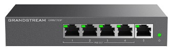 Grandstream GWN7700P - Unmanaged Network Switch, 5x GbE RJ45, 4x PoE 802.3 af/at, up to 30W per port, 60W total power budget, metal case, 53.5V/1.22A PSU