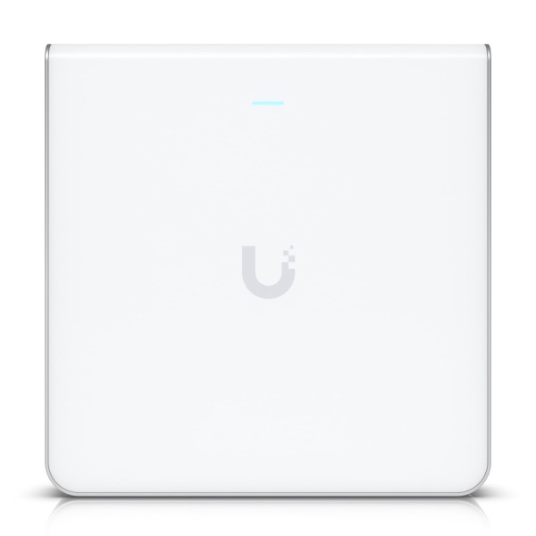 Elegante access point Wi-Fi 6E montato a parete con switch a quattro porte integrato, progettato per reti di uffici ad alta densità. Questo access point supporta lo standard Wi-Fi 6 e opera nelle bande 2,4GHz, 5GHz e 6GHz. La velocità di trasmissione aggregata è di 10,2 Gbps. UniFi 6 In-Wall è dotato di una porta PoE-in Ethernet 2,5G e di quattro porte RJ45 GbE con PoE-out su una porta (se il dispositivo è alimentato con PoE+ o PoE++).