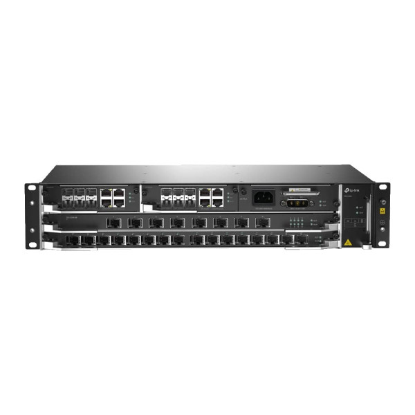 TP-Link - DS-P8000-X2 - 2U Chassis OLT,2xMain Control Boards, each with 6x 10GBbps SFP+ uplink ports, 1x Gigabit RJ45 uplink port, 1x RJ45 Console port, 1x Gigabit RJ45 Manage port; 1x Power Supply Module which support AC and DC input; 1x FAN Board, 2x Service Board Slots
