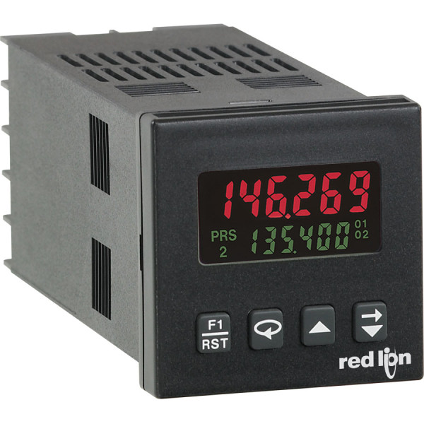 Red Lion C48C DC (1P,B,SNK,RLY), C48C Single Preset Counter, 1/16 DIN, 2 Line, 6 Digit Backlight LCD, NPN OC Output, Relay Outputs, DC Powered