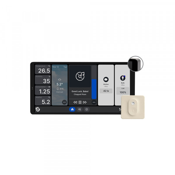• Controllo integrato: utilizza Shelly Wall Display per gestire gli altoparlanti Bluetooth e Sonos, regolare il termostato per la temperatura ambiente e monitorare il consumo energetico, la temperatura ambiente e i livelli di umidità in tempo reale.