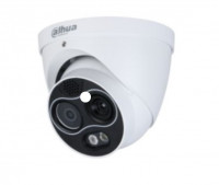 Telecamera bullet termica ibrida IP AI da interno/esterno IP67, risoluzione termica 256x192, sensibilità 40 mK, ottica termica 3.5 mm, spettro visivo 8~14 µm, sensore standard 1/2.7" 4 MP, ottica standard 4 mm, ICR, portata IR fino a 35 m, 1 porta LAN 100 Mbps, 1 ingresso e 1 uscita allarme, 1 ingresso e 1 uscita audio, IVS (protezione perimetrale), rilevamento incendi e temperature (12 regole punto/linea/area, range -20°~+150°/0°~550°), smoking detection e utilizzo cellulare, luce bianca e speaker, micro SD card (256 GB), alimentazione 12 Vdc/PoE