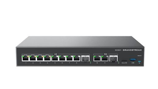 Grandstream GCC6011 - All-in-one device: VPN Router, NGFW, Switch and IP PBX. 2x SFP, 10x GbE WAN/LAN, 4x PoE-Out, 2.5Gbps NAT routing, VPN 1Gbps, IDS/IPS 900Mbps, local AP controller