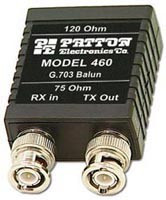 - Conversione da cavo coassiale a 75 Ohm a doppino telefonico a 120 Ohm