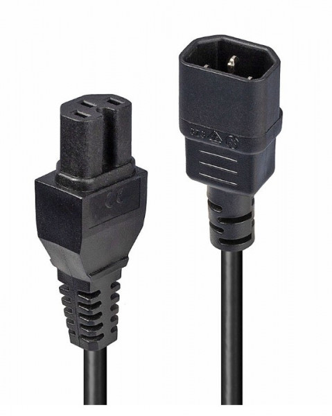 LINDY No. 30314 - Cavo di alimentazione da 2m C14 a C15 per condizioni di esercizio a caldo, Nero